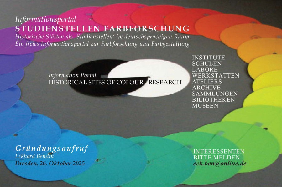 In den letzten Jahren gab es wiederholt Anfragen von Wissenschaftlern und Gestaltern, auch Ergebnisse Ihrer Arbeit in die Dresdner Sammlung einzubringen, was aber auch wegen räumlicher Knappheit kaum noch realisierbar war. Deshalb richtet sich der nachfolgende Gründungsaufruf auch an all Jene, die einen wissenschaftlichen oder/und künstlerischen Nachlass zu verwalten haben und ihn zur besseren öffentlichen Wahrnehmung gern in einen Informationsverbund in Gestalt eines freien 'Informationsportals'zur Farbforschung und Farbgestaltung einbringen möchten. In einer Zeit, in der räumliche und finanzielle Ressourcen immer knapper werden, könnte ein derartiges Portal dazu beitragen, auf historische Stätten und Schätze im deutschsprachigen Raum aufmerksam zu machen und ggf auch helfen, sie zu jeweils spezifischen 'Studienstellen der Farbforchung und Farbgestaltung' zu entwickeln. Bewegt hat mich zu diesem Schritt der aktuelle Fall des vor einem Jahr verstorbenen Architekten, Designers, Malers und Autors Lothar Gericke (1937-2024), dessen Atelier in Sophienstedt/Barnim b. Berlin in disem Sinne eine ideale Studienstelle sein könnte. Gericke entwickelte gemeinsam mit dem erst vor wenigen Wochen leider auch verstorbenen Farb-u. Oberflächengestalter Klaus Schöne (1937-2025) - auch Co-Autor des Buches 'Das Phänomen Farbe', Hentschelverlag 1970 - ein innovatives 'Planetensystem' differenzierter Farbausmischungen sowie den praxisorientierten 'Farbenkatalog für die Gestaltung' des DAMW, Berlin1969/70.
